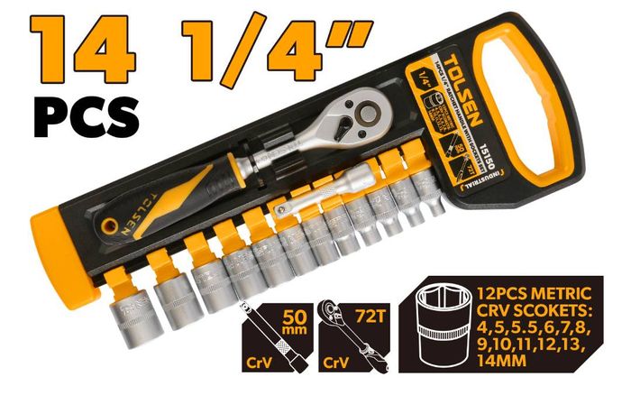 RATCHET HANDLE WITH SOCKETS 1/4 INCH 14PCS
