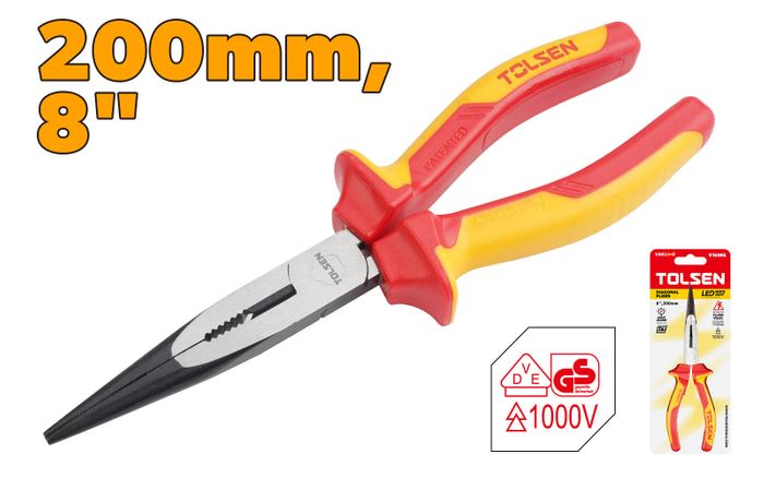 - INSULATED LONG NOSE PLIERS 200MM 8 INCH